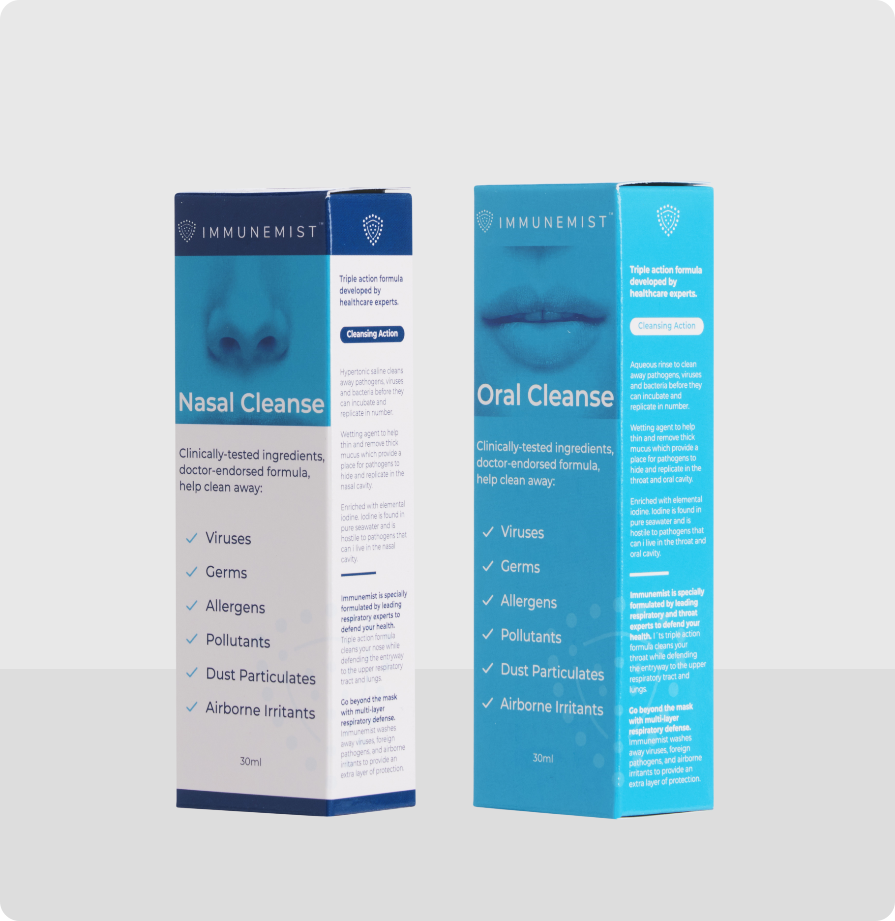 - The ImmuneMist® System (Nasal + Oral Cleanse) provides superior cleansing to that of conventional nasal sprays. It is well known that inhaled particles come into the nose and exit the mouth during coughing. Therefore, it’s imperative to decontaminate both the nasal and oral cavities.